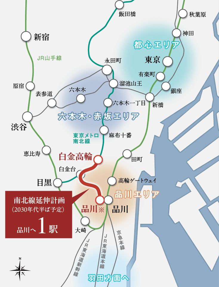 東京メトロ南北線を「白金高輪」駅で分岐させ、