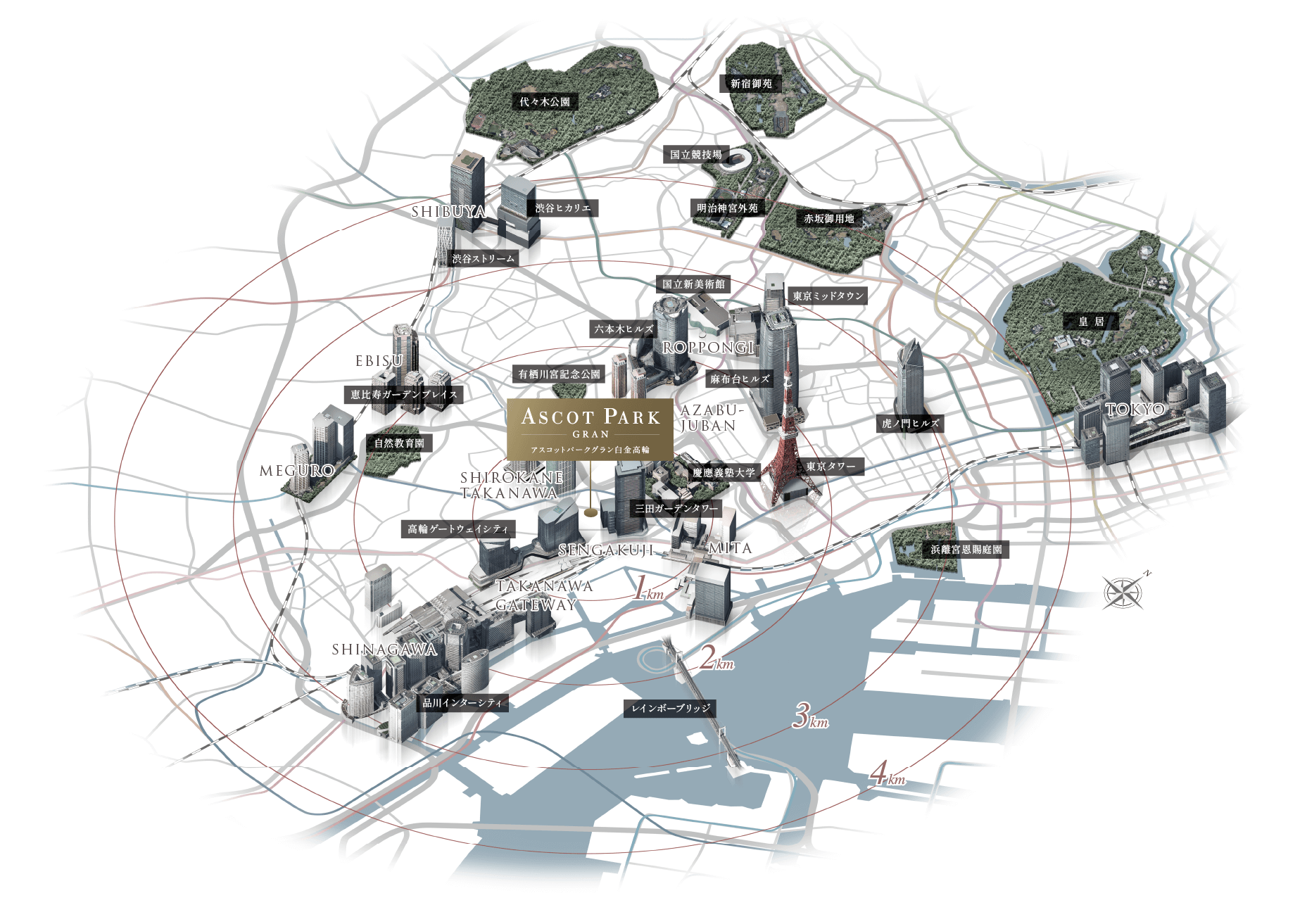 "ASCOT PARK GRAN Shirokane-Takanawa" is ideally situated at the heart of four distinct and vibrant