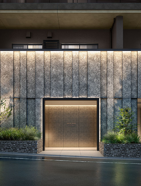 和の感性が息づく、陰影に彩られた外観や内部へ誘う共用部、